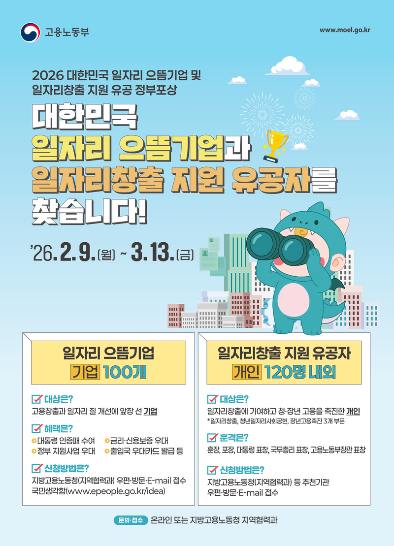 2026년 대한민국 일자리 으뜸기업 및 일자리창출 유공 정부 포상 신청안내